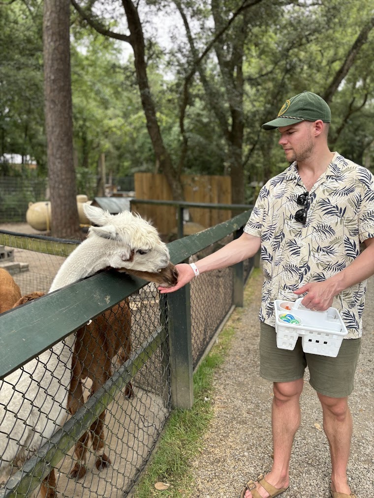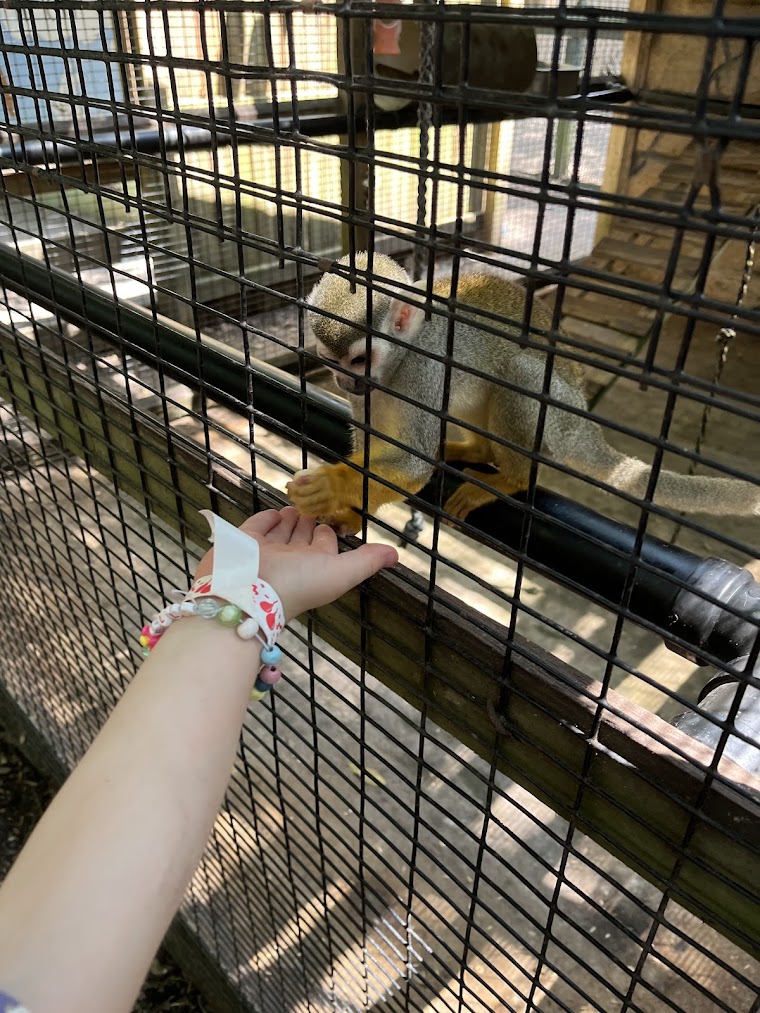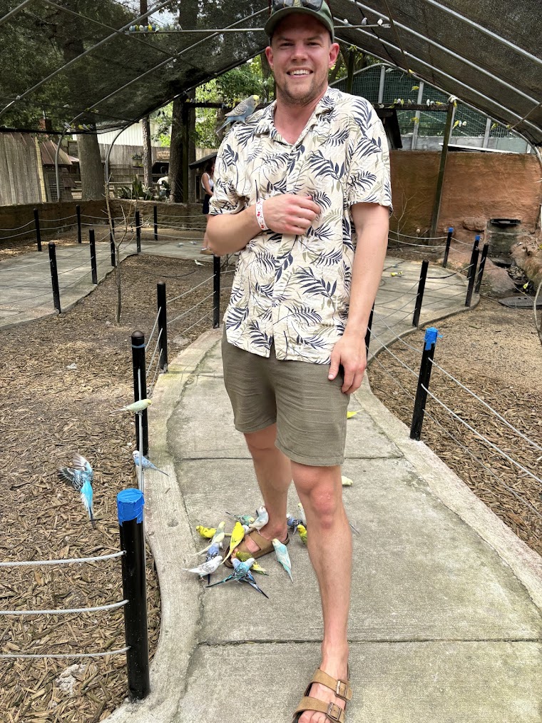 Djurparken är mindre i skala jämfört med Nordens Ark eller Borås Djurpark hemma i Sverige, men här i USA är den på ett vis öppnare och mer interaktiv. Både vi vuxna och våra barn fick, utan åldersbegränsning, mata många av djuren där vi till och med tog möjligheten att gå in i en stor fågelbur full av undulater som landade på oss och pickade av saltet man svettats ut. En stor utmaning för den kittliga och kanske inte superfräscht, men definitivt en kul och annorlunda upplevelse.